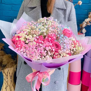 Твой апрель - коробка с желтыми кустовыми розами и хризантемами
